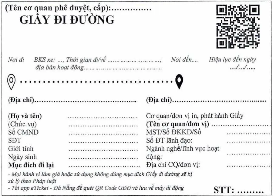 Mẫu giấy đi đường QRCode mới tại Đà Nẵng.