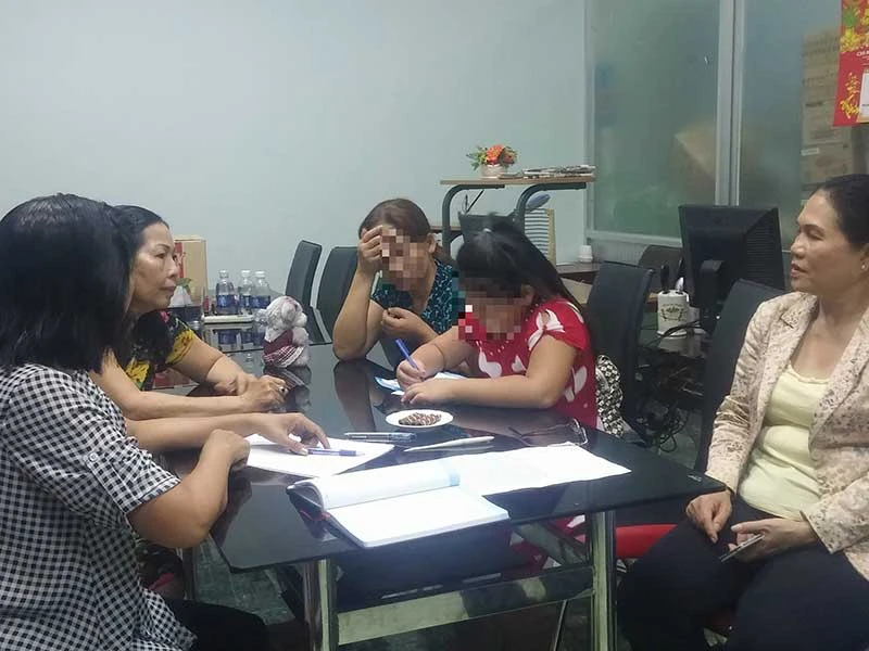 Chi hội Luật sư - Hội Bảo vệ quyền trẻ em TP.HCM đang tiếp nhận và tư vấn cho phụ huynh một em bé tám tuổi tố bị người hàng xóm hiếp dâm. Ảnh: HOÀNG LAN