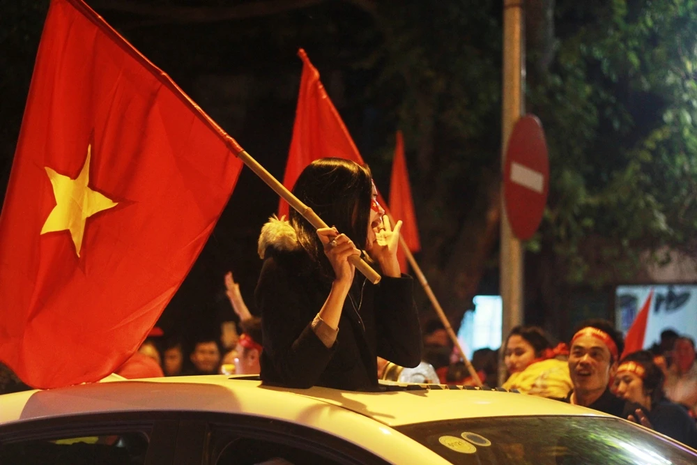 Hà Nội, sau khi đội tuyển Việt Nam lên ngôi vô địch, rất nhiều cảm xúc được người hâm mộ tạo ra trên nhiều tuyến đường của thủ đô. Trong đó có cả hình ảnh những người lao động.