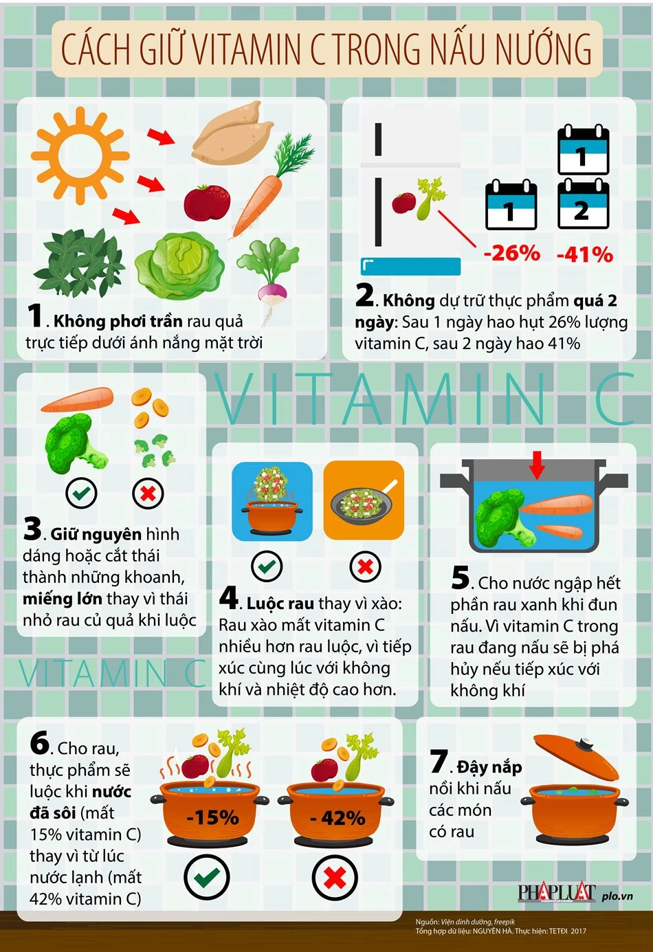 (PLO)- Trong quá trình nấu nướng, bảo quản thực phẩm, chúng ta không nên giữ thực phẩm quá lâu hoặc phơi trần rau củ với ánh nắng mặt trời... để có thể giữ lại được tối đa giá trị dinh dưỡng của các vitamin trong thực phẩm.