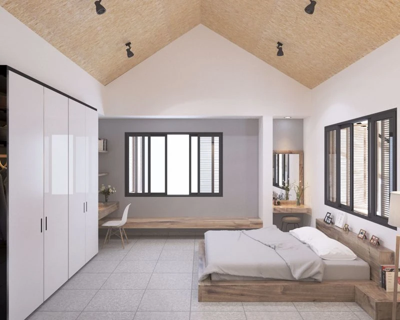 Phía tầng giường nên trùng là tủ lạnh, bồn rửa chén, bàn ăn... Tuy nhiên, các trường hợp này cần được bố trí sao cho hài hòa, tránh sắp xếp lộn xộn làm ảnh hưởng đến bố cục chung của toàn căn nhà.