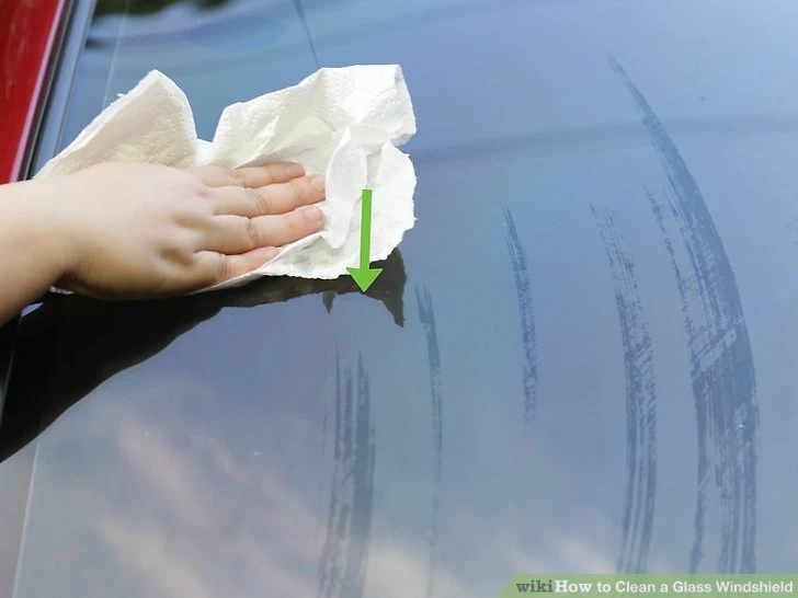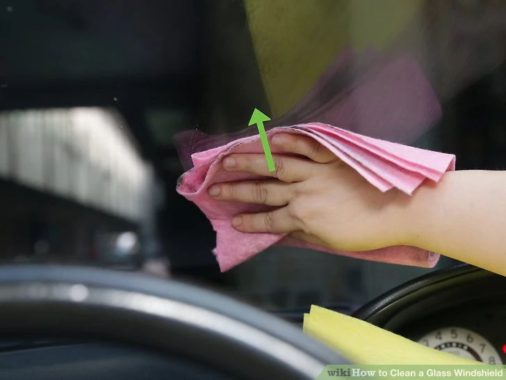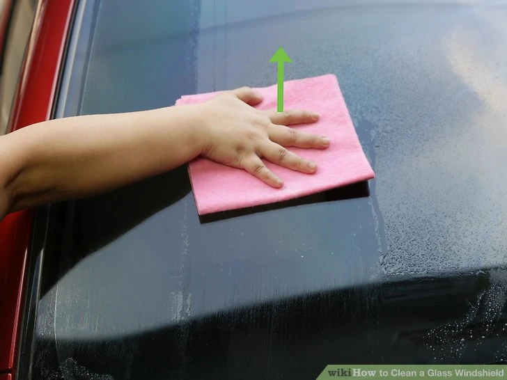 Lau kính sạch bằng khăn lau: Sử dụng khăn vải sợi nhỏ để lau kính chắn gió. Sau khi xịt nước rửa kính lên bề mặt của kính bạn tiến hành lấy khăn lau theo chiều dọc.