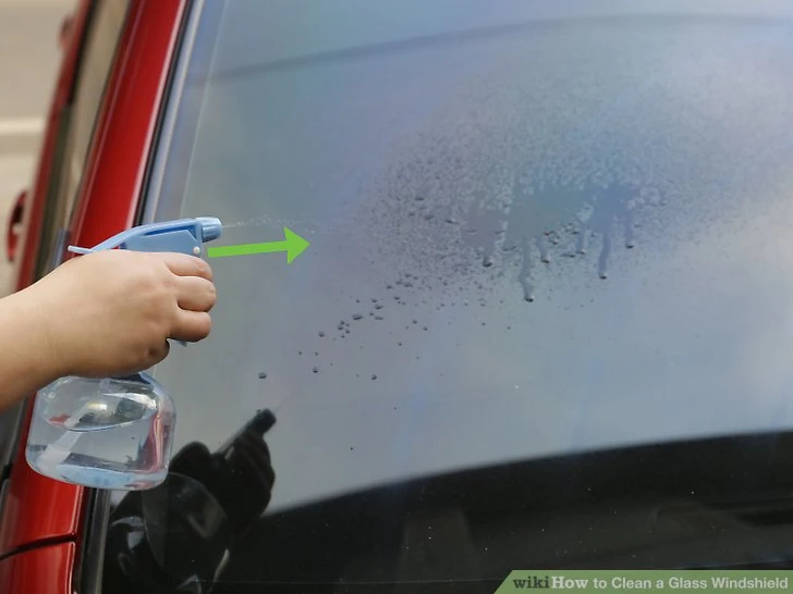 Dùng nước rửa kính pha loãng xịt lên bề mặt kính chắn gió: Luôn luôn pha loãng chất tẩy rửa kính với nước trước khi xịt lên bề mặt của kính. Bạn có thể tiến hành xịt một nửa kính chắn gió trước, sau đó tiến hành xịt nửa còn lại để dễ dàng lau sạch phần bụi bẩn hơn.