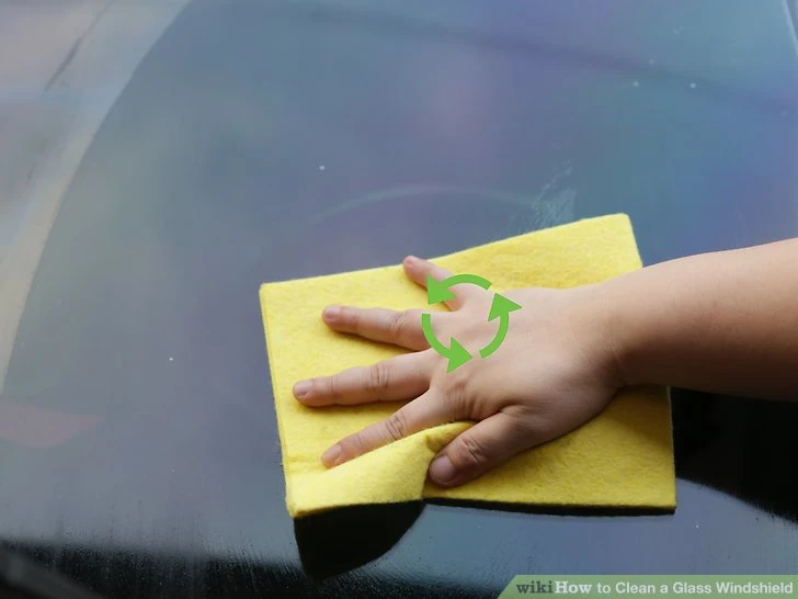 Hãy lấy một chiếc khăn sạch, sau đó tiến hành di chuyển tay theo chuyển động tròn xung quanh bề mặt kính chắn gió. Bắt đầu ở một bên của xe, sau đó di chuyển sang bên kia để đảm bảo toàn bộ bề mặt của kính chắn gió được làm sạch.