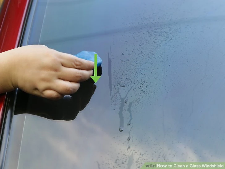 Tiến hành di chuyển miếng đất sét khắp toàn bộ mặt kính chắn gió. Ảnh: wikiHow