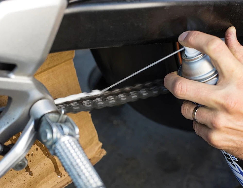 Sử dụng dầu hỏa hoặc chất tẩy rửa chuyên dụng xịt đều xích. Ảnh: Motorcyclist