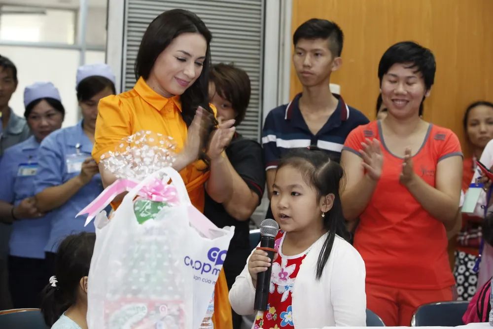 Ca sĩ Phi Nhung nhiệt tình với các bệnh nhi nghèo.