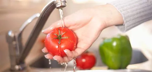 Các loại rau có lá nhỏ thì phải rửa trong chậu với nước sạch nhiều lần. Quả tươi nên rửa dưới vòi nước sạch nhiều lần, trước khi ăn nên gọt vỏ.