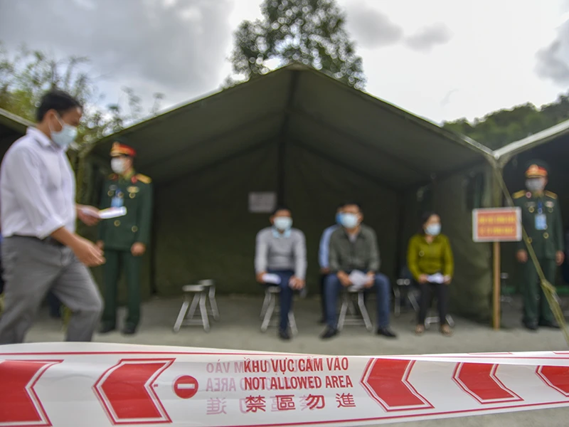 Diễn tập cách ly những người về từ vùng dịch tại Trường Quân sự tỉnh Thừa Thiên-Huế. Ảnh: NGUYỄN DO