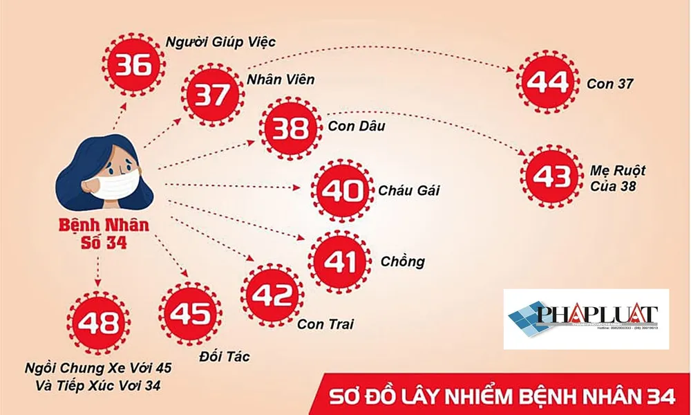 Sơ đồ lây lan của bệnh nhân 34. Đồ họa: Trí Việt