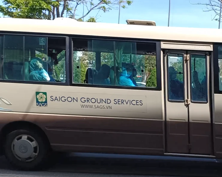 Xe đưa đoàn người về từ Hàn Quốc đến các khu vực cách ly tại Đà Nẵng. Ảnh: TẤN VIỆT