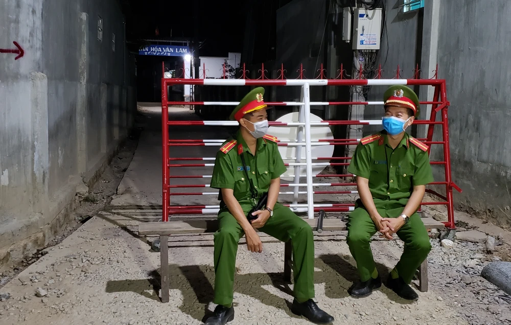 Lực lượng chức năng đang tiến hành rào chắn một con hẻm. Ảnh: TỰ SANG