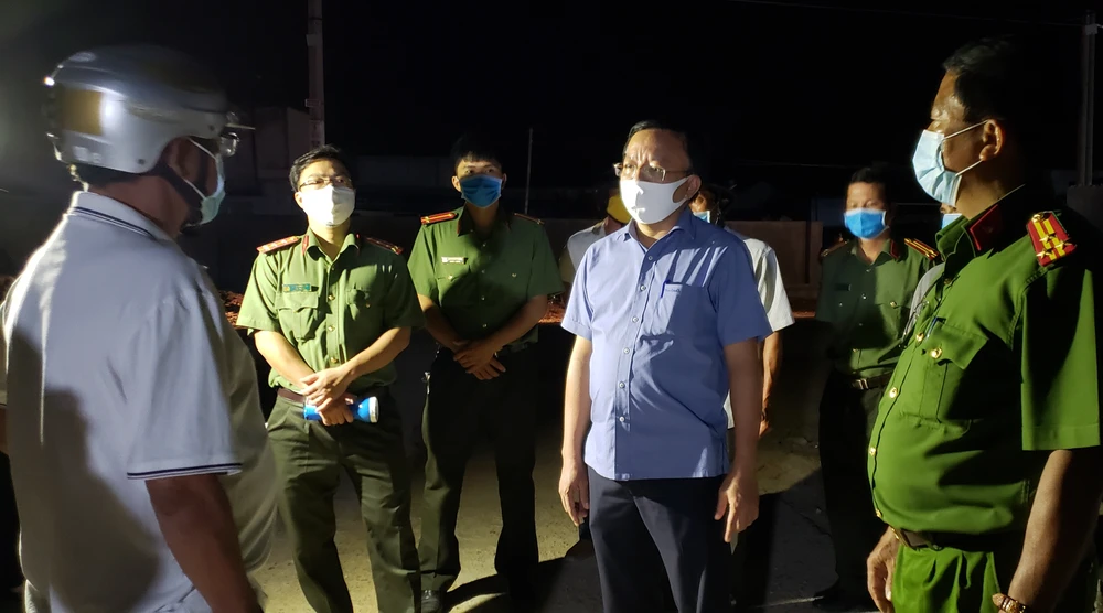 Người dân từ bên trong khu vực cách ly được lực lượng chức năng nhận diện, ngăn cản. Ảnh: TỰ SANG