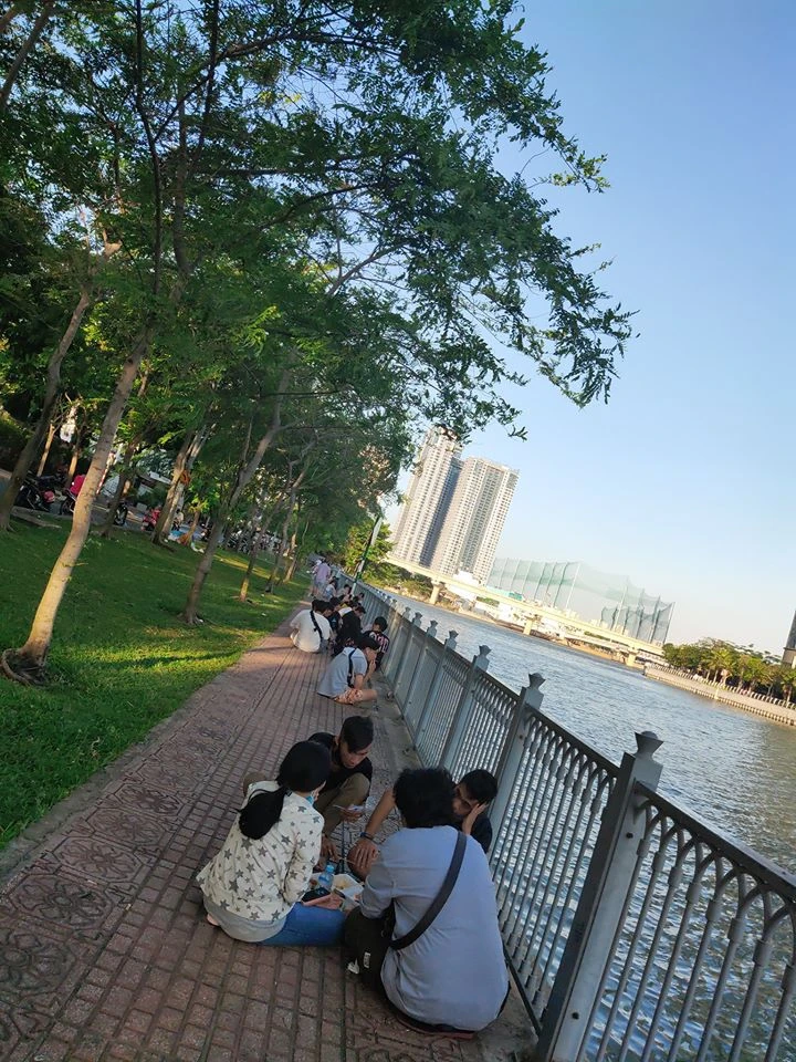 Những bạn trẻ tụ tập ăn uống, vui chơi vào cuối tuần ở bờ kè kênh Nhiêu Lộc trong những ngày cuối tuần.