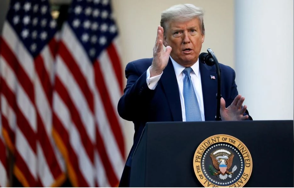 Tổng thống Mỹ Donald Trump họp báo ngày 16-4 tại Nhà Trắng về tình hình dịch COVID-19. Ảnh: REUTERS