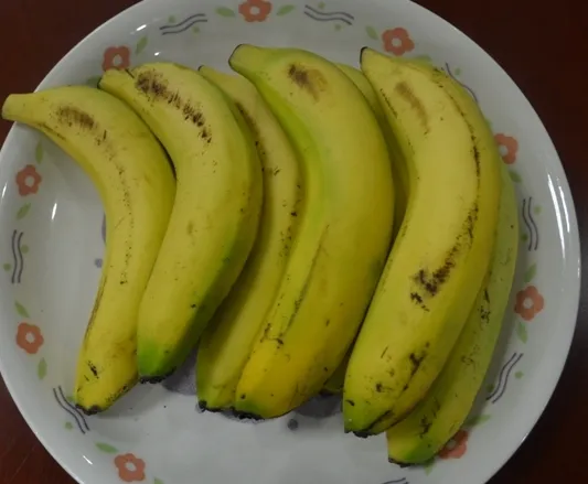 Chuối chín tự nhiên không chín cùng một lúc, mà có trái chín trước, trái chín sau. Khi trái chín, cuống nhiều khi vẫn còn xanh. Trái chín vàng bóp nhẹ thấy mềm tay.