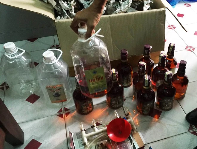 Công nghệ làm rượu giả ngày càng tinh vi, khiến người mua khó nhận biết được đâu là rượu thật, rượu giả. Ảnh: internet