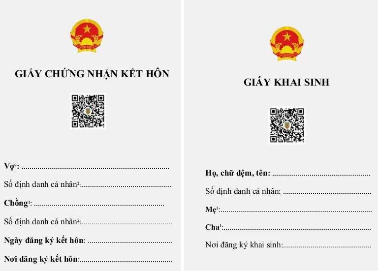 Mẫu bản điện tử giấy khai sinh, giấy đăng ký kết hôn có mã QR quy định tại Thông tư 01/2022. Ảnh: TRÚC PHƯƠNG