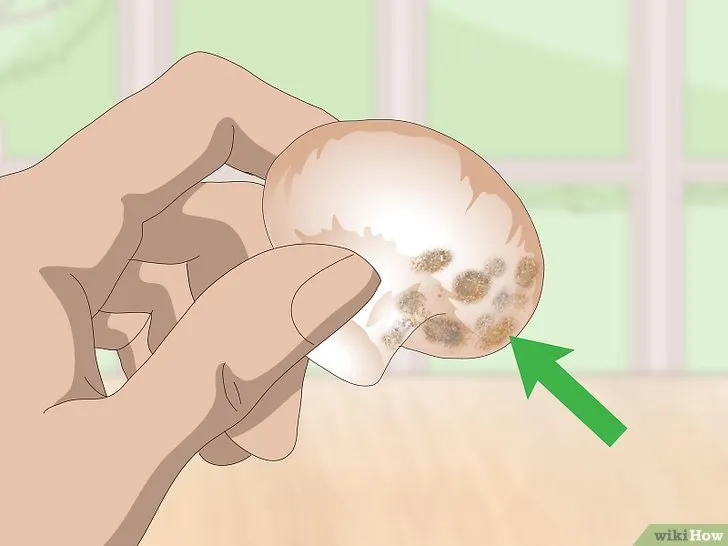 Bạn không nên mua các loại nấm đã xuất hiện các đốm đen, nâu trên bề mặt. Ảnh: WikiHow