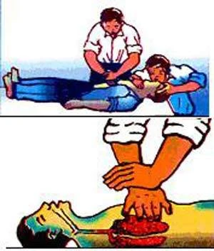 - Kiểm tra xem nạn nhân còn thở hay không bằng cách, áp má vào mũi nạn nhân và xem lồng ngực có di động hay không, hoặc dùng tay đặt vào động mạch hai bên cổ nạn nhân. Với nạn nhân không có dấu hiệu thở thì tiến hành hô hấp nhân tạo và ép tim lồng ngực tại chỗ, cho đến khi tự thở được hoặc xác định nạn nhân chắc chắn đã chết thì mới dừng lại.