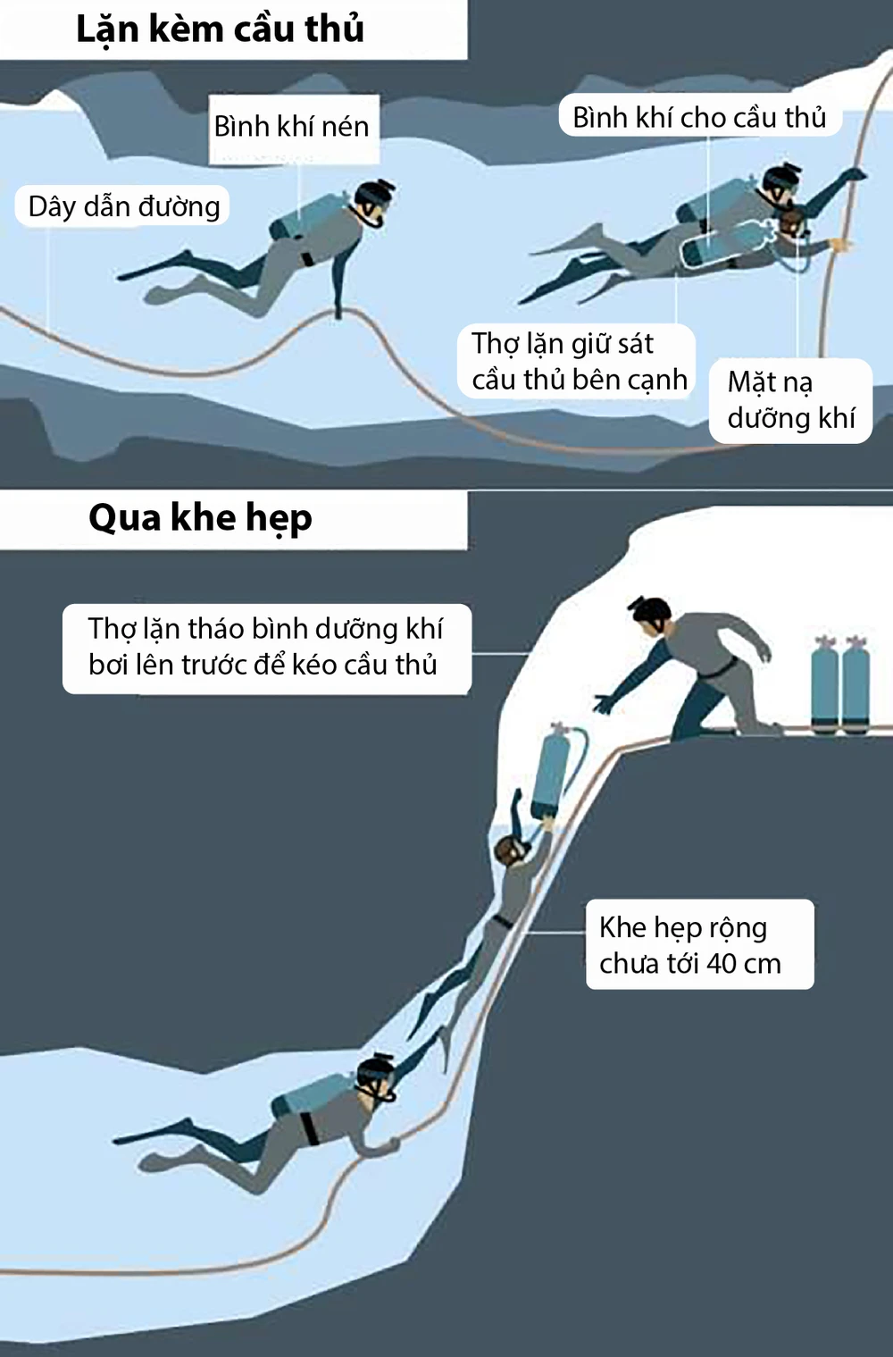 Dưới đây là cách thợ lặn giải cứu đội bóng: (Đồ họa: BBC)