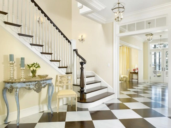- Không nên dùng thảm màu đỏ vì nó gây cảm giác không an toàn. Thay vào đó, bạn có thể sử dụng các loại thảm màu gỗ, hoặc sử dụng gạch hoa.