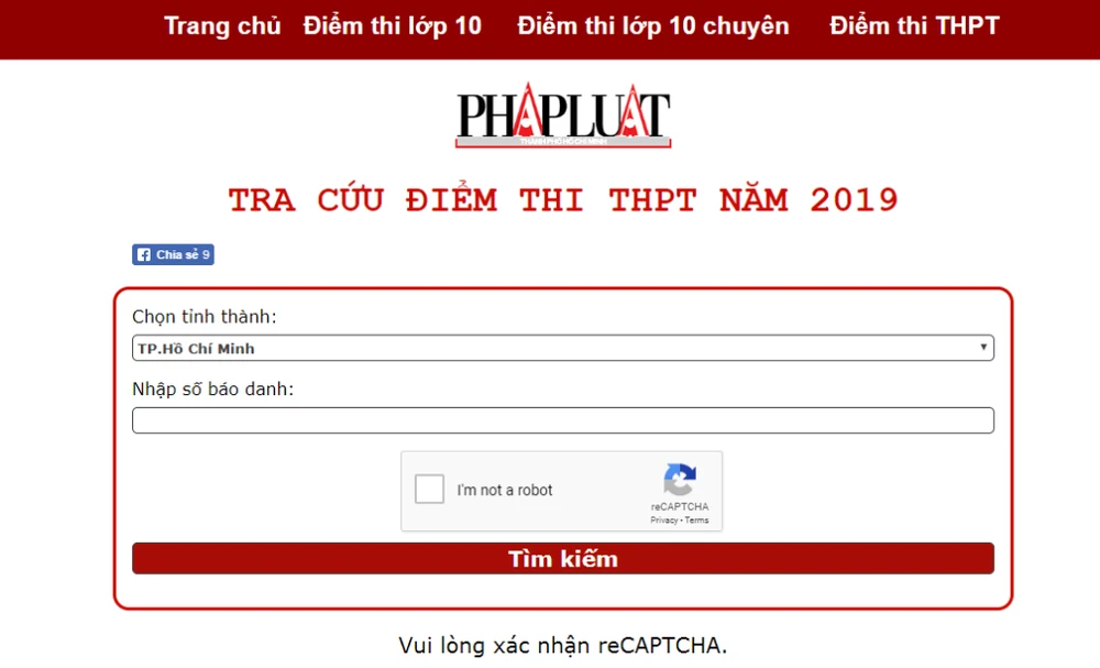 Cách thứ nhất, thí sinh truy cập vào trang http://tradiemthi.plo.vn, thí sinh click vào ô tra cứu của mục điểm thi THPT. Sau đó chọn tỉnh/thành, nhập số báo danh rồi click vào ô tìm kiếm sẽ ra điểm số của mình.