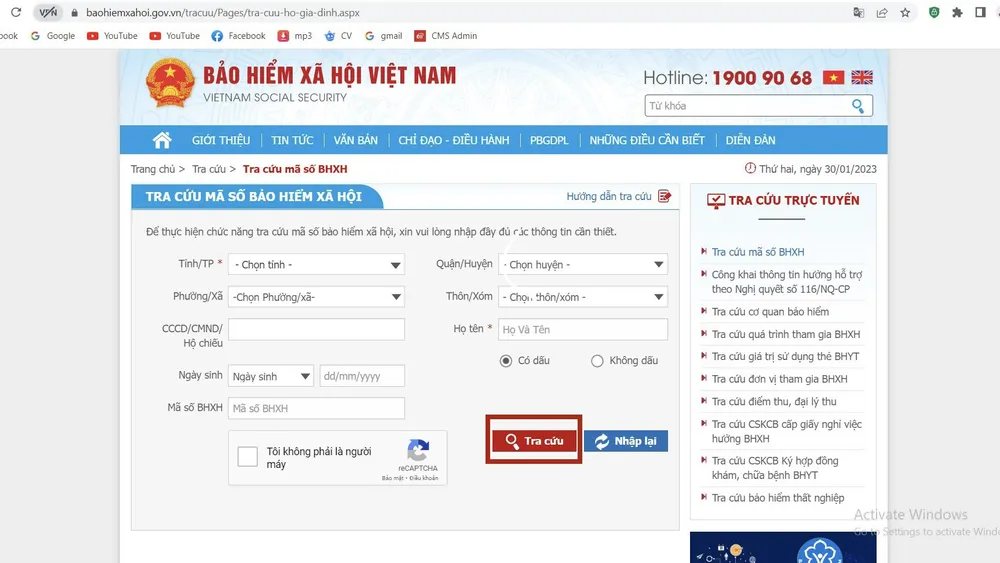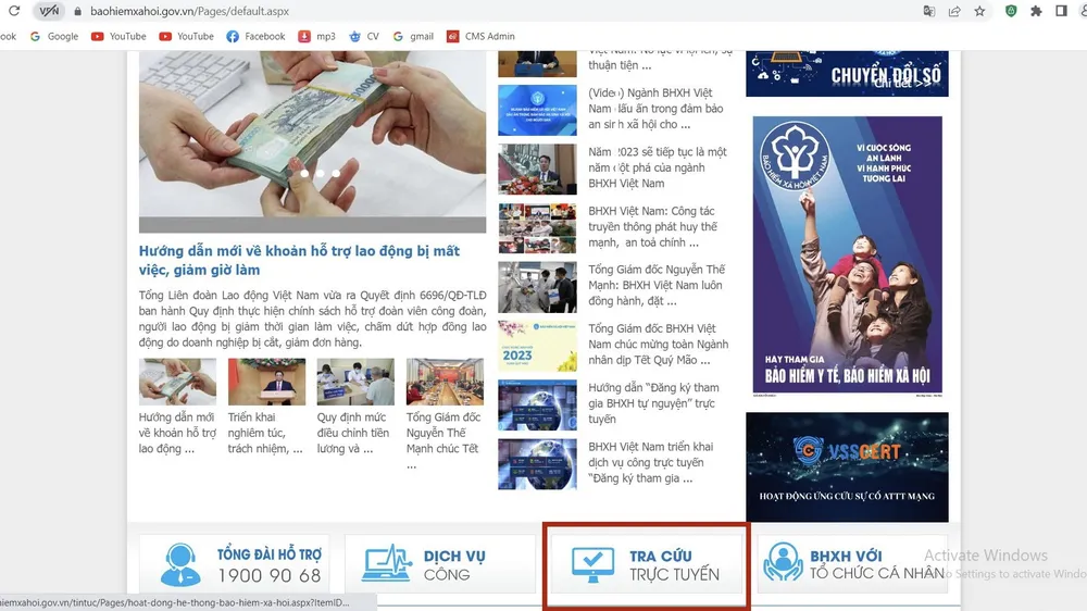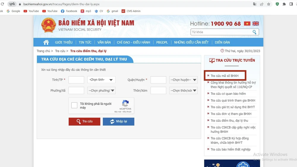 Bước 3: Chọn "Tra cứu mã số BHXH" bên góc phải màn hình.