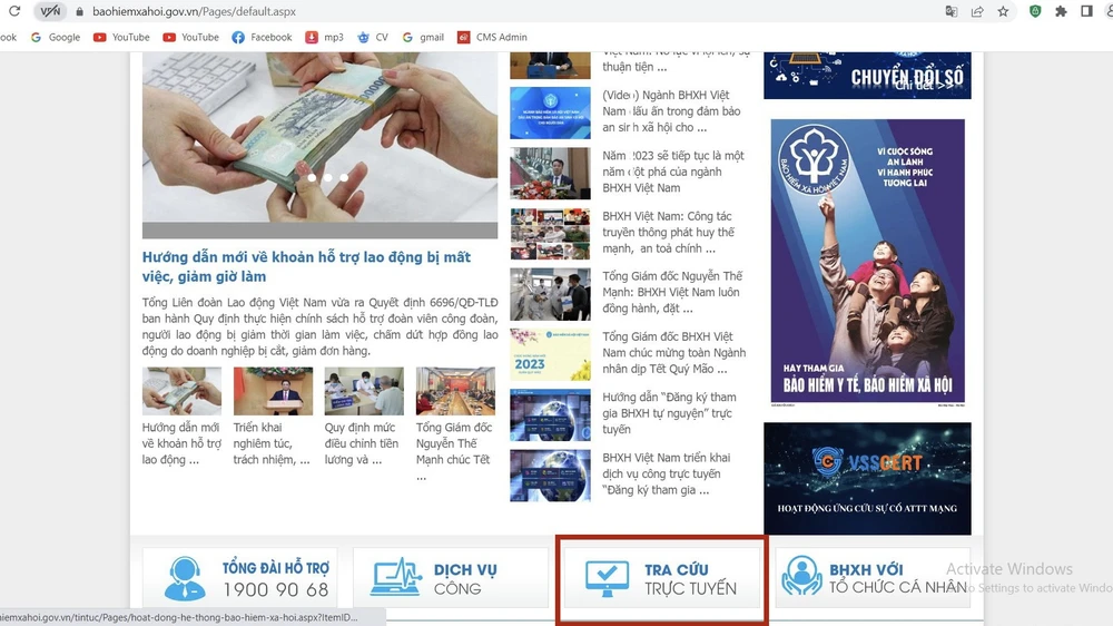 Bước 1: Truy cập vào website của cơ quan BHXH Việt Nam tại địa chỉ: https://baohiemxahoi.gov.vn.