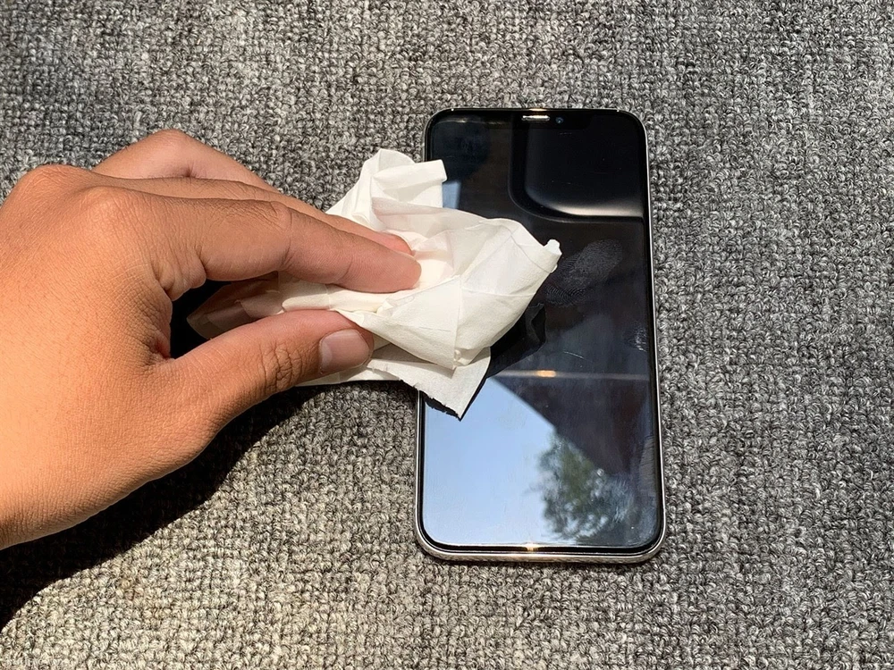 Dùng khăn hoặc bộ dụng cụ vệ sinh để làm sạch bề mặt của điện thoại.
