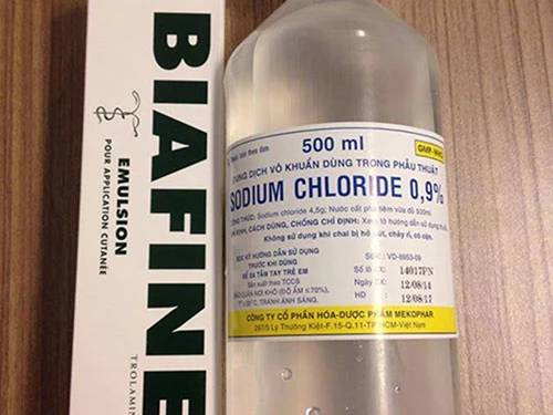 - Chai nước muối sinh lý NaCl 9 0/00 500ml.