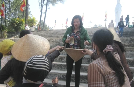 Có mặt tại tượng Quán thế âm Bồ tát ngày mùng 9 tháng giêng âm lịch chúng tôi chứng kiến hàng trăm người ăn xin, trong đó có cả trẻ, già, phụ nữ, một số còn bồng bế con dại nằm, ngồi lê lết dọc kín cả con đường vào tượng. Mỗi lần có khách, những người ăn xin này thường đưa nón mủ, chìa tay, thậm chí đeo bám, “truy sát” khách đến cùng để xin tiền.