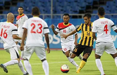 Cái bóng Malaysia được theo dõi kỹ trong trận gặp Đông Timor dù họ đá bằng đội hình B. Ảnh: TTVH