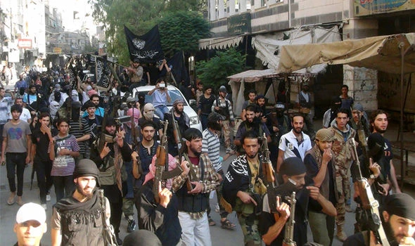 Những chiến binh Al-Nusra Front phản đối tại Aleppo hồi tuần này. Ảnh: Express