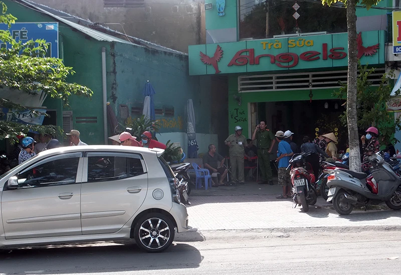 Thấy xe dừng phía trước, chủ quán quán phở và trà sữa bên cạnh đến đề nghị chị B. dời xe đi nơi khác vì khách ở quán ra vào gặp khó khăn dẫn đến cãi vã, xô xát.