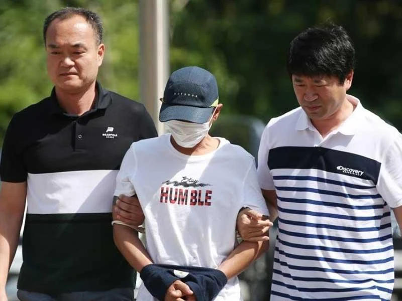 Người chồng Hàn Quốc đánh vợ trước mặt con bị cảnh sát dẫn giải ra tòa TP Gwangju, tỉnh Jeollan Nam ngày 8-7. Ảnh: THE STAR ONLINE