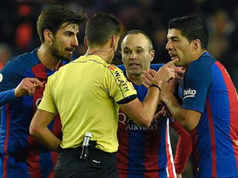 Cái giá quá lớn cho suất chung kết của Barcelona là người hùng Suarez đúng phút 90 lại nhận thẻ đỏ từ lỗi đá xấu với Hernandez khiến sẽ vắng mặt trận chung kết cùng với Sergie!