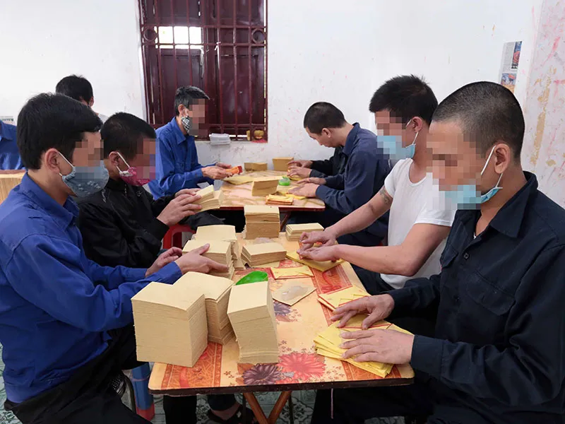 Các học viên lao động tại cơ sở điều trị nghiện ma túy tỉnh Hưng Yên. Ảnh: TTXVN