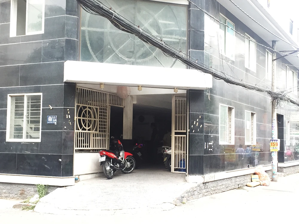 Khu vực nhà để xe nơi xảy ra án mạng được lực lượng chức năng phong tỏa. Ảnh: H.Tâm