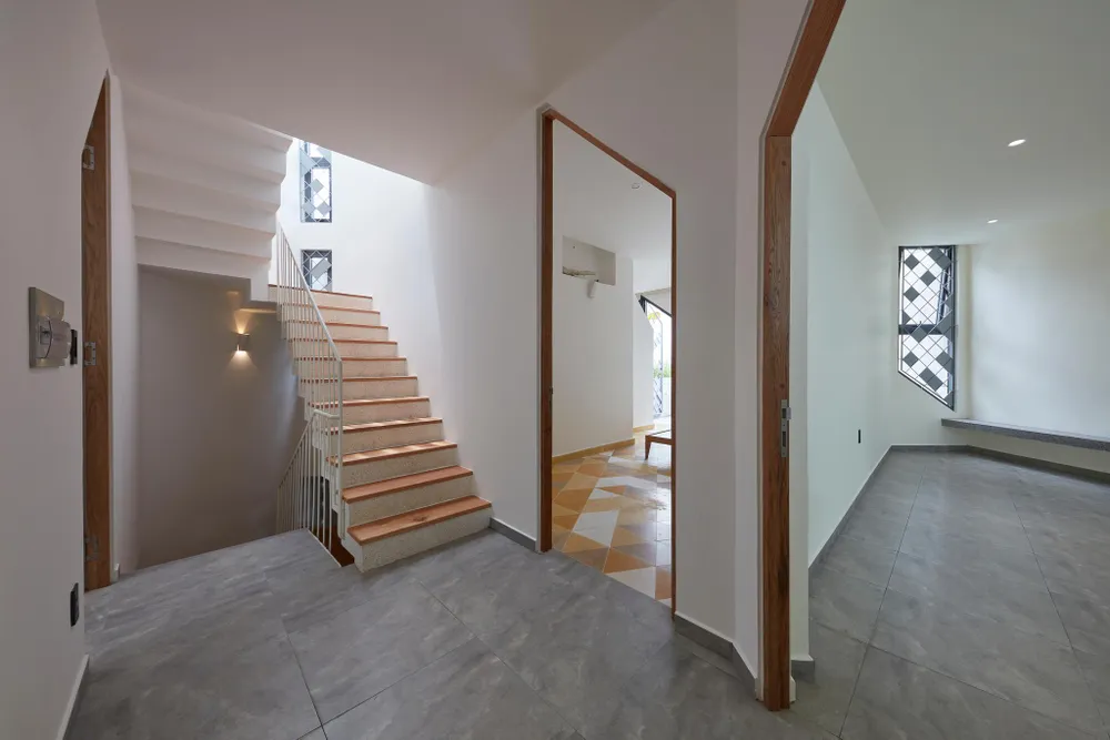 Các phòng mà còn mở ra giếng trời, sân trong và lõi lưu thông mới, giúp tối ưu hóa ánh sáng tự nhiên.
