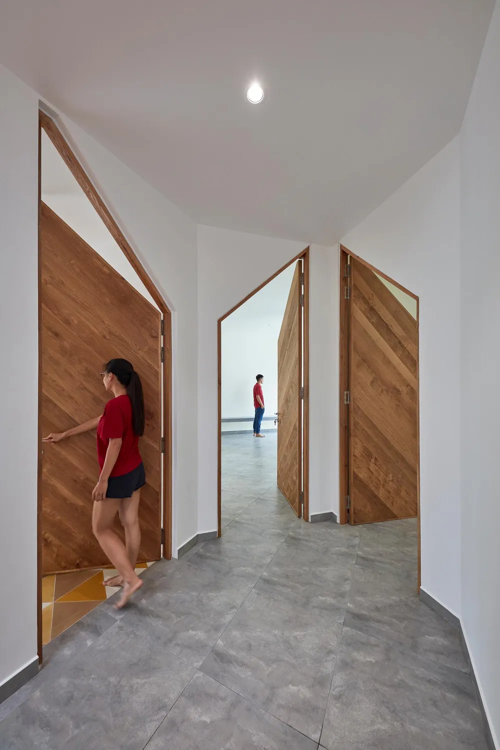 Việc ngăn chia căn nhà theo ngôn ngữ tam giác cũng đồng thời tạo ra các góc đặc trưng riêng cho từng phòng.