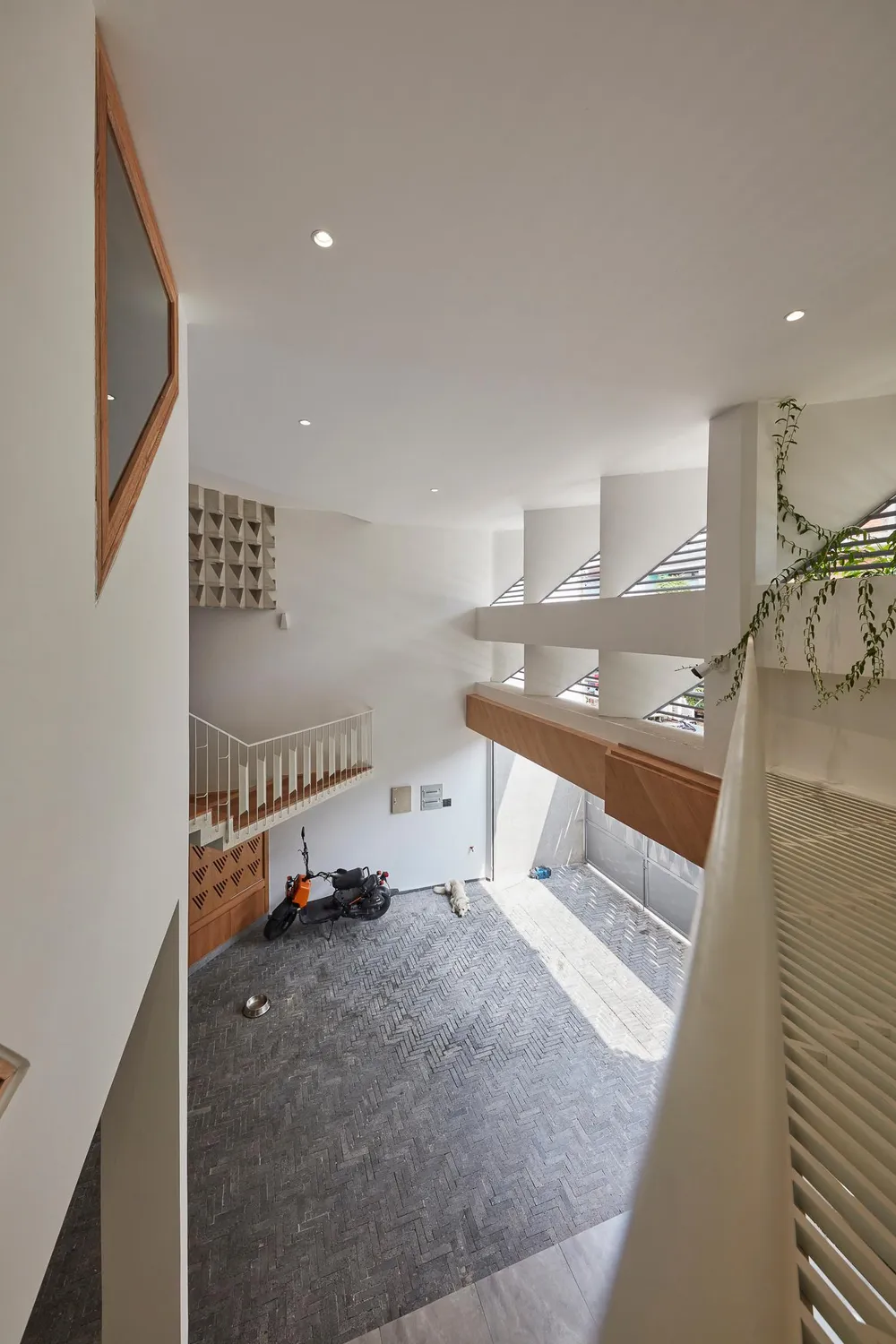 Từ đó, cách làm của kiến trúc sư tạo nên những phòng ở với những góc chia mới lạ tiếp cận được các vị trí có lợi cho việc thông thoáng như giếng trời, sân trong và trục giao thông mới.
