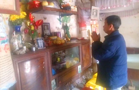 Ông Chấn trong ngày ở tù oan trở về. Ảnh: V.T Sau đó, ông Nguyễn Thanh Chấn bị khởi tố, bắt giam và bị kết án chung thân về tội giết người. Trong 10 năm thụ án, ông Chấn và gia đình liên tục kêu oan. Đến tháng 11-2013, Lý Nguyễn Chung ra đầu thú và khai mình mới chính là hung thủ giết chết chị Hoan để cướp của. Ngay sau đó, ông Chấn được tạm đình chỉ thi hành án và được trả tự do. Bản án sơ và phúc thẩm kết tội ông trước đây bị hủy. Hiện ông Chấn đang chờ cơ quan tố tụng chính thức minh oan cho ông. Tết sum họp Đã 23 tết nhưng nhà ông Nguyễn Thanh Chấn vẫn bình thường như mọi ngày. Ngôi nhà cũ kỹ, tường vôi loang lổ lâu ngày không được quét. Cánh cổng gỉ sét theo thời gian, mở ra phải dùng sức. Dăm ba con gà chạy khắp sân. Khi chúng tôi đến, ông đang dọn dẹp trong nhà. Chỉ có bàn thờ có bông hoa cúng cùng dĩa trái cây, dăm ba gói bánh xanh đỏ gọi là. Ông Chấn nói: “Từ ngày trong tù trở về tôi chưa làm được gì ra tiền. Chiều nay chỉ làm một mâm cơm để cúng ông Táo thế thôi. Năm nay cả nhà được sum họp thế là vui rồi”. |