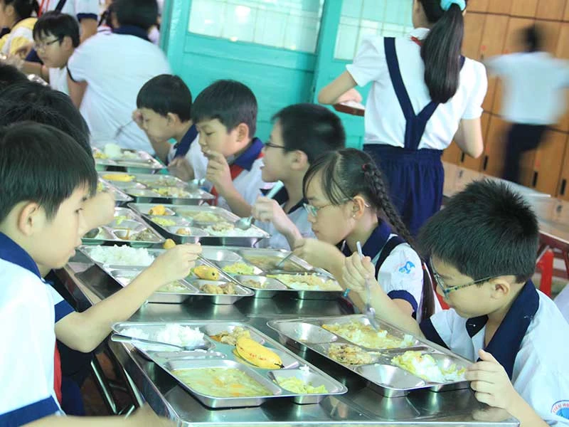Một buổi ăn tại Trường Tiểu học Trưng Trắc, TP.HCM.