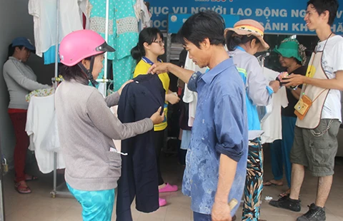 Sáng 29-4, Gian hàng 2K thu hút khá đông người lao động. Họ, những người công nhân tay chân lấm lem bùn đất từ công trường, người bán vé số tóc tai bê bết nhễ nhại nhưng khi chạm vào những cuốn tập dành cho con gái, cái áo thun dành cho chồng, đôi giày bata êm chân thì ánh mắt long lanh, sáng rỡ, bao mệt nhọc gần như tan biến. Mặc dù mỗi món hàng chỉ có giá 2.000 đồng nhưng mọi người đều rất đắn đo khi chọn món đồ cho riêng mình.