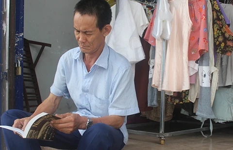 Vừa bỏ 2.000 đồng để chọn mua cuốn sách Nam Bộ xưa và nay, ông Toàn tranh thủ đọc luôn tại Gian hàng 2K. Ảnh: HOÀNG LAN
