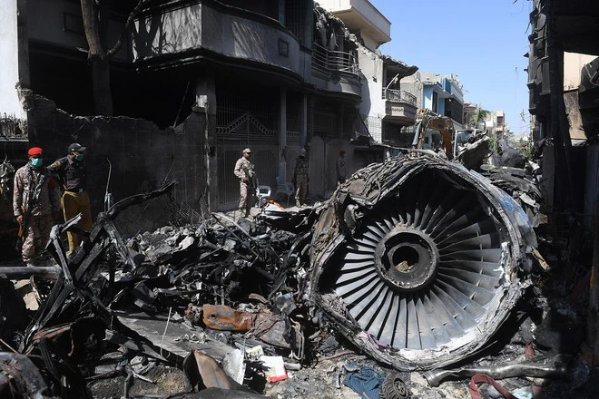 Vụ tai nạn máy bay Airbus A320 của hãng Pakistan International Airlines (PIA) rơi xuống khu dân cư. Ảnh: AFP