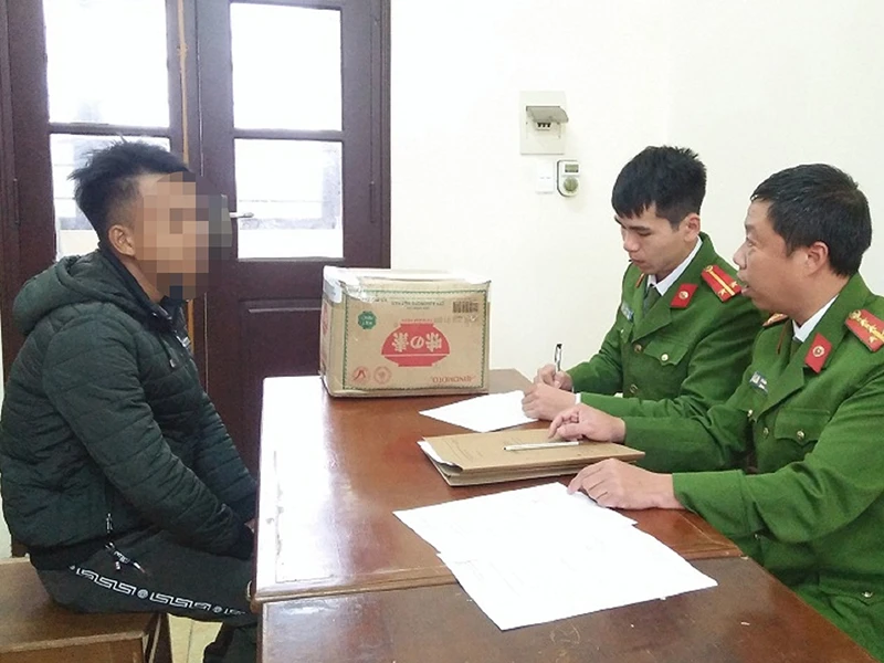 Công an làm việc với người tham gia tố tụng trong một vụ án hình sự. (Ảnh do công an cung cấp)