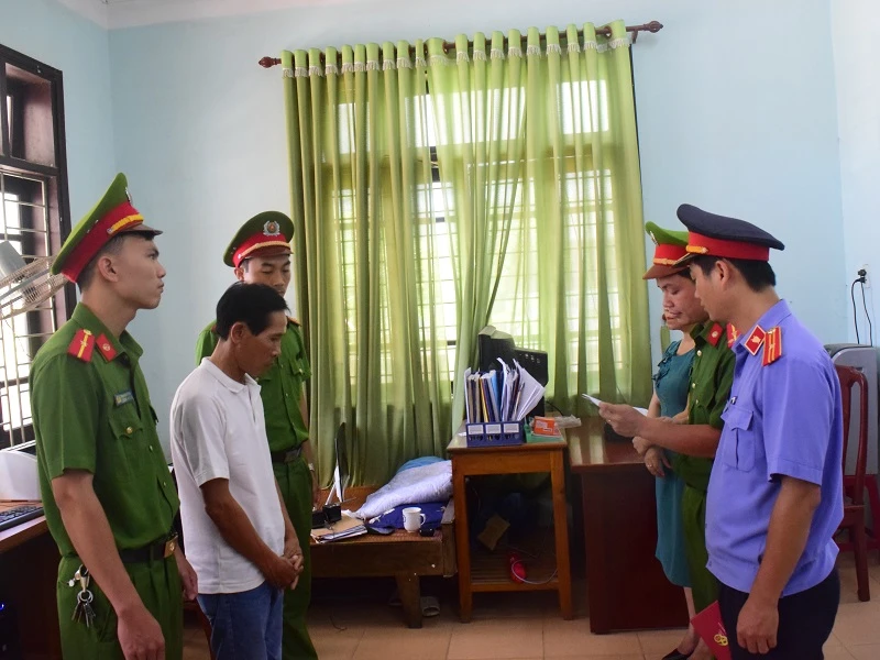 Lực lượng chức năng đọc quyết định khởi tố, bắt tạm giam đối với Hoàng Văn Bảo. Ảnh: B.TRÂM