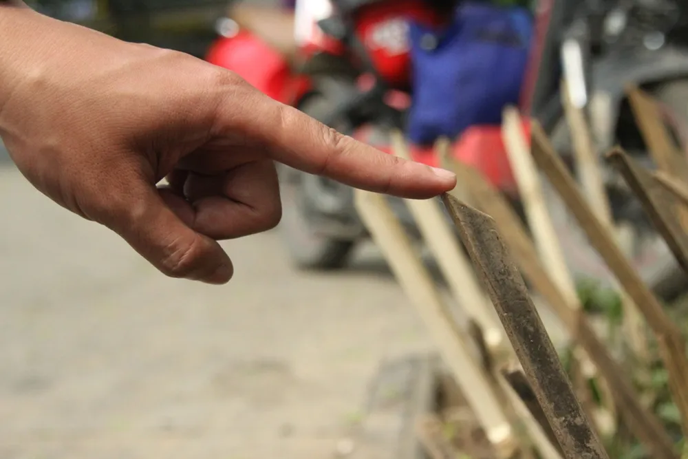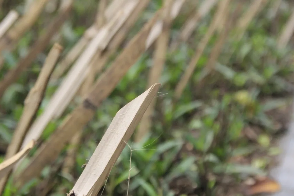 Hàng ngàn cọc tre sắc nhọn được cắm quanh vườn hoa.